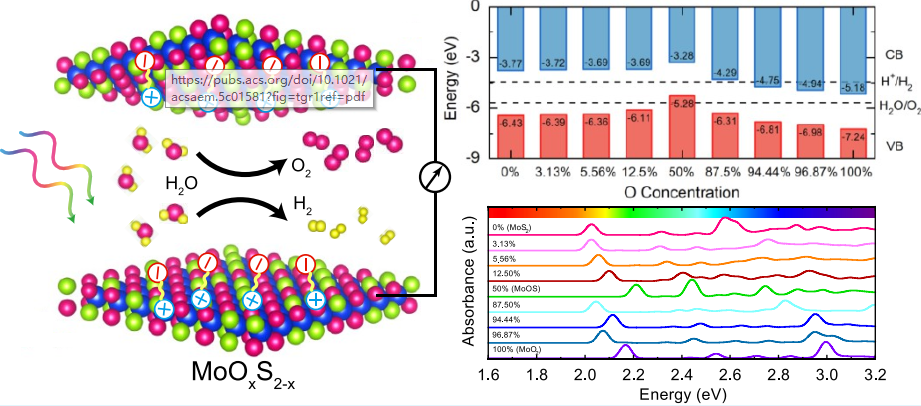 我校光学与电子信息学院2021级电子信息科学与技术专业本科生李亮作为第一作者,光学与电子信息学院雎胜研究员、丁云副教授为通讯作者的科研论文 “Quasiparticle Energy, Electron−Hole Excitation, and Optical Property in Oxygen-Substituted MoS2 Monolayers”在ACS系列期刊ACS Applied Energy Materials上发表(2025年7月23日)。