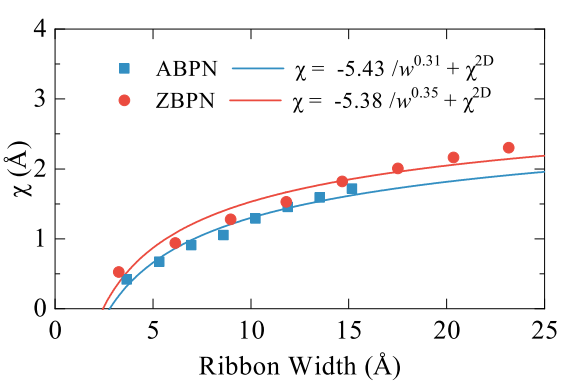 该研究基于密度泛函理论与多体微扰方法,从材料物理和光电器件应用的双重角度出发,系统研究了蓝磷纳米带的激发态特性与光学响应调控机制。结果表明,蓝磷纳米带因其独特的介电屏蔽效应和各向异性载流子行为,展现出显著的多体相互作用特征。其准粒子带隙随带宽呈1/w规律变化,激子能量与束缚能则分别遵循1/w¹·⁵与1/w⁰·⁸的演化关系,而其极化率则随1/w⁰·⁴变化,揭示了一维体系中强电子关联效应对光学性质的决定性影响。
