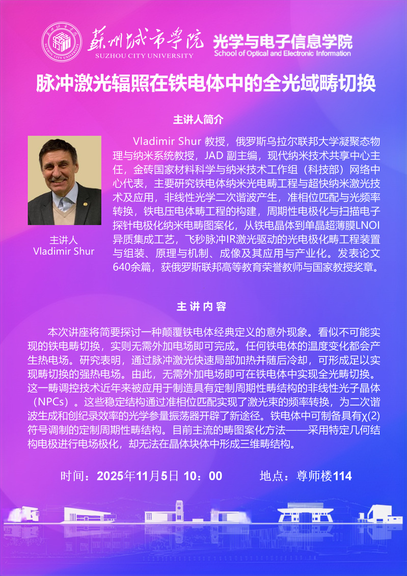 学术讲座——脉冲激光辐照在铁电体中的全光域畴切换